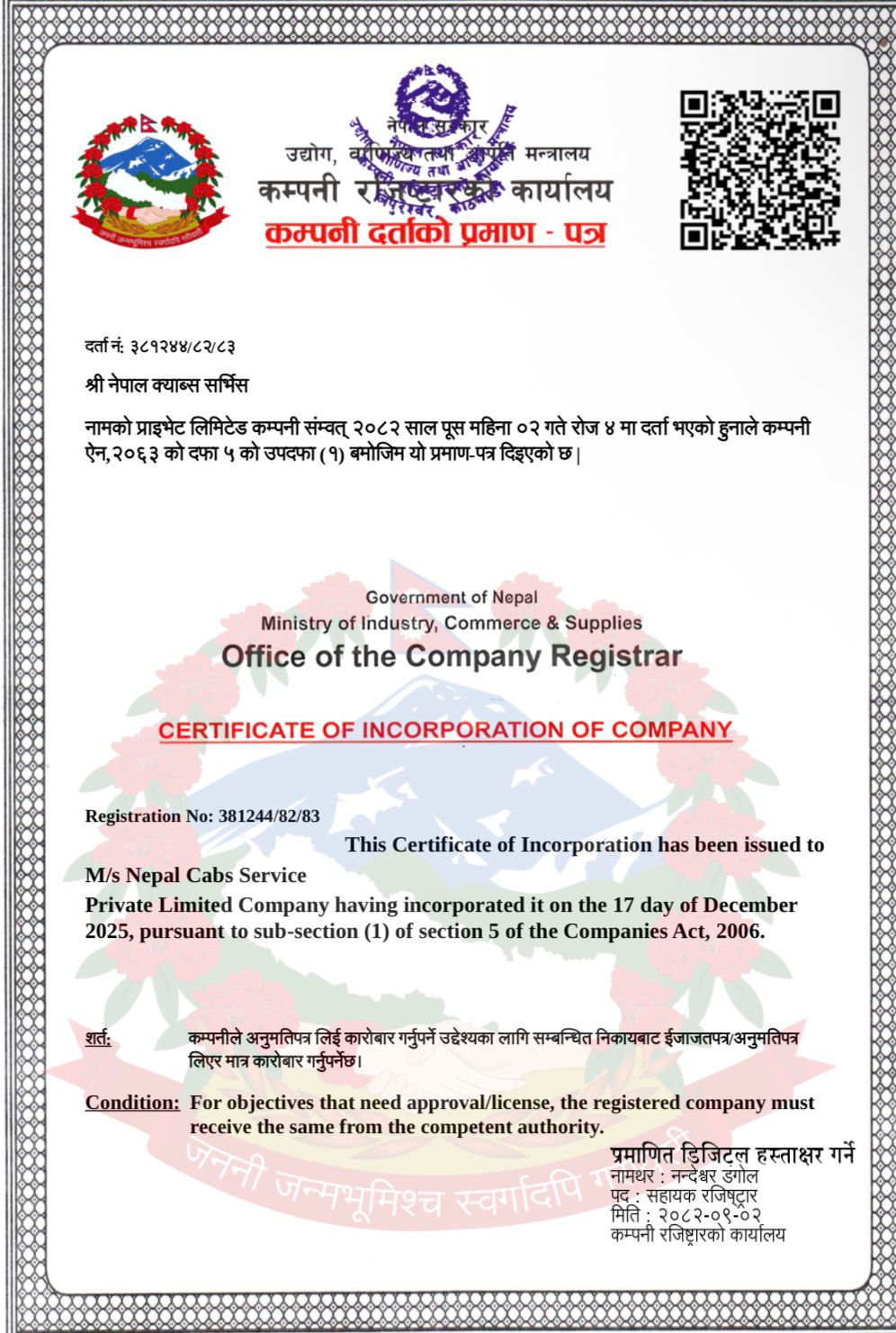 Companr Registration Certificate